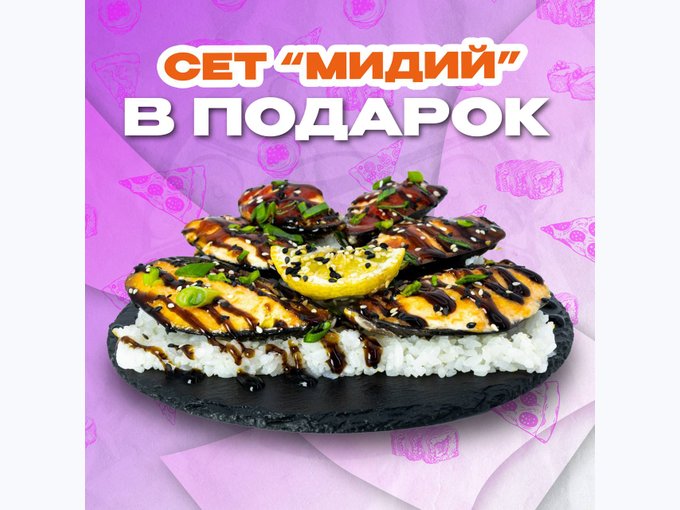 Пицца, Роллы, Суши и многое другое.